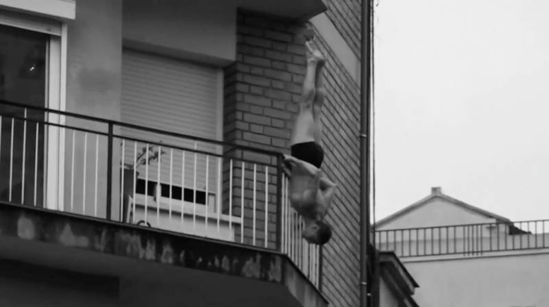 El coqueteig amb la mort d’una escena tan dura i arriscada tindria un significat totalment diferent si l’escena s’hagués rodat en color: el cel, els edificis i els arbres en color podrien haver transmès una sensació de vida. En el vídeo de Sergio Ojeda intuïm que som a l’estació de l’any relacionada amb la tristesa, als dies previs a la mort de la naturalesa, a l’arribada de l’hivern, i això ho veiem no per l’ús del color sinó precisament per l’ús del blanc i negre. El blanc i negre reforça a més el paisatge urbà, l’asfalt gris, la solitud i el buit. L’acte per si mateix, la performance del penjat, es converteix en l’element central, que no té simbolismes afegits. El vertigen que ens produeix el buit als peus de l’artista es contraposa amb la bellesa de la figura retallada contra el cel gris. La pintura en grisalla té un efecte malenconiós i gairebé fantasmagòric.