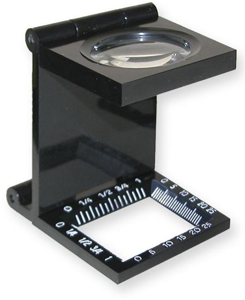 Lent de gran augment suportada per una estructura plegable constituïda per tres parts articulades de metall o plàstic. S’empra en les arts gràfiques per a comprovar els punts de les trames impreses en semitons, registre roseta i color. Al seu torn permet distingir detalls de petites dimensions en tipografia, fotografia i impressió.