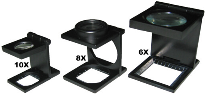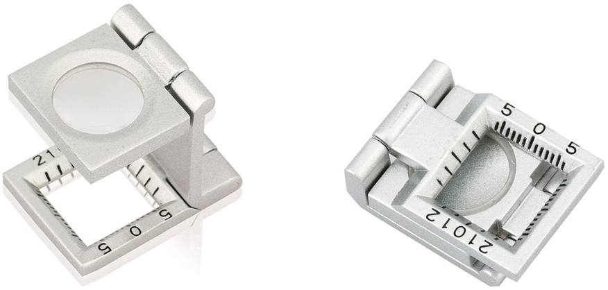 Comptafils metàl·lic de 10x muntat i plegat: https://www.grupobillingham.com/lupa-cuentahilos-de-metal-10x