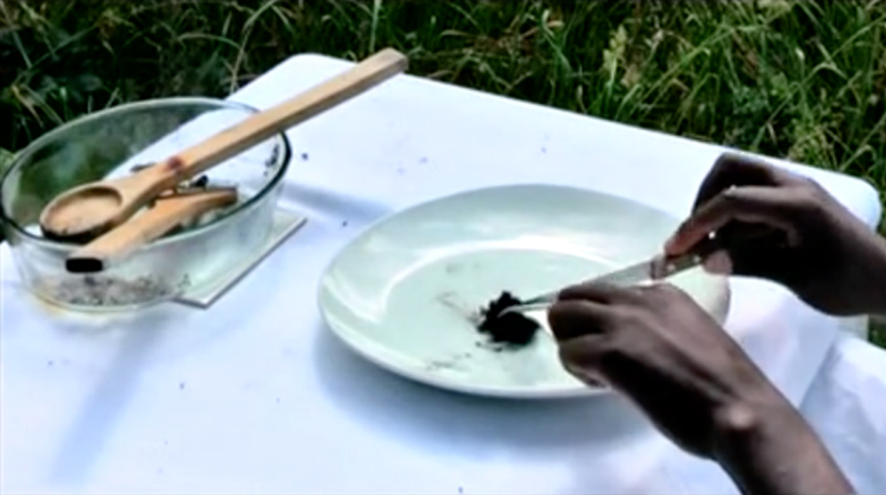 Tornem a una escena final en què la taula apareix sola al camp, coberta per una tela de cotó. Sons de campanes d’església ens porten a un fos negre, església que va ser un dels principals responsables de l’imperialisme cultural d’Occident, de l’aculturació i la colonització.