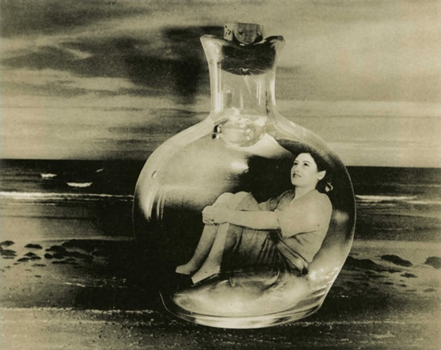 Grete Stern, Botella del mar, 1950. https://lamiradadelmamut.com/2015/05/05/grete-stern-feminismo-y-fotomontajes/