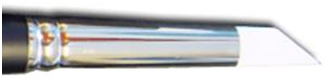 El pèl del pinzell bisellat està muntat sobre una fèrula plana. Per aconseguir aquesta forma, se’n munten de mes llargs a mes curts.