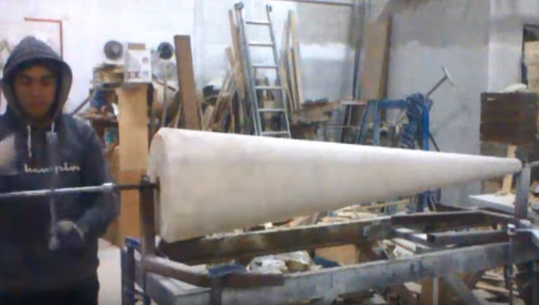 Hi ha maquinària sofisticada per a tornejar pedra, amb aportació d’aigua i eines de desbast. En essència, la tècnica del torn resideix a fer girar un objecte sobre el seu eix de simetria. Aquesta fotografia mostra un bloc de pedra que gira sobre el seu eix i és polit per abrasió mitjançant una senzilla radial. En el vídeo es pot veure el procés.