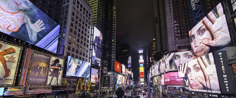 Els diferents formats de pantalles proliferen no solament en els dispositius d’ús personal sinó també en les pantalles publicitàries de les ciutats, amb formats diferents adaptats a l’arquitectura on es mostren. Els videoartistes també han hagut de treballar amb aquests nous formats de pantalla de l’espai públic. Recordem la cèlebre peça Open My Glade (2000) de Pipilotti Rist en les pantalles de Times Square o, més recentment, les obres We are here, we are queer (2017) d’Andrés Senra per a les pantalles de Callao, les quals esmentem en el text Videoart, feminismes i artivismes LGTBI*.