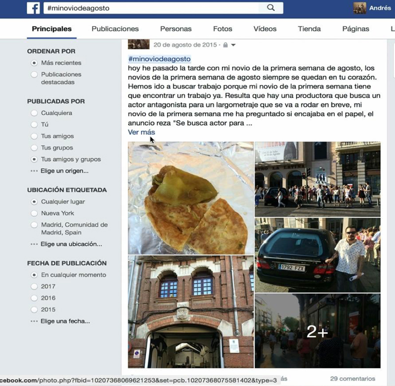 Andrés Senra. Mi novio de agosto (performance on Facebook), 2015.