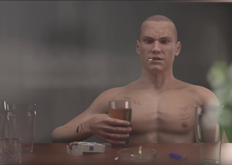 Ed Atkins ha treballat amb obres en què recrea avatars de persones mitjançant l’ús de programari com Faceshift, que mapa el moviment dels músculs del rostre i les expressions facials. Aquestes tecnologies de reconeixement facial són utilitzades per empreses com Microsoft per a permetre als ordinadors personals reconèixer el rostre de l’usuari, o per empreses de comunicació com Snapchat, que permeten als usuaris crear el seu propi avatar a partir del seu rostre real. Els personatges creats així per Ed Atkins exploren els sentiments d’estranyesa i familiaritat que ens provoca un rostre recreat digitalment, que podria ser el nostre o actuar com nosaltres en un context virtual. El seu treball s’interessa per aspectes poètics i emocionals, més enllà d’una reflexió sobre la mateixa tecnologia. Per a l’artista, la tecnologia és un mitjà per a explorar els seus propis interessos estètics, la literatura, la poesia i el llenguatge com a construcció de sentit.