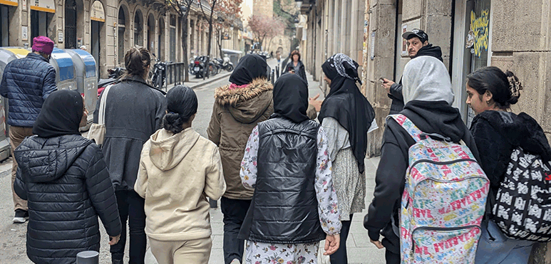 - Recorregut i observació: durant la marxa, les persones participants identifiquen i exploren elements de l’entorn segons la dinàmica proposada. En molts casos, es tracta de recorreguts freqüents o evitats, punts conflictius, necessitats no resoltes, llocs de confort i seguretat o, per contra, espais amenaçadors o problemàtics.