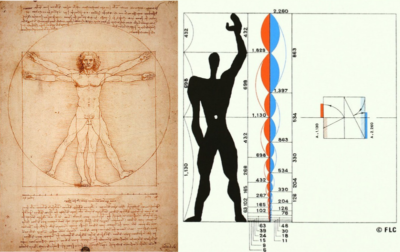 Però haurem d’esperar fins a mitjan segle XX per trobar una nova proposta d’articulació de tot el sistema constructiu humà a partir d’un model basat en les dimensions dels individus. Serà Le Corbusier, l’arquitecte francès, qui elaborarà una proposta proporcional de mesures que aplicarà a l’arquitectura i també a tots els objectes relacionats amb els espais arquitectònics. Una idea que proposarà una idealització de les mides humanes a la qual anomenarà Le Modulor [‘el Modulor’].