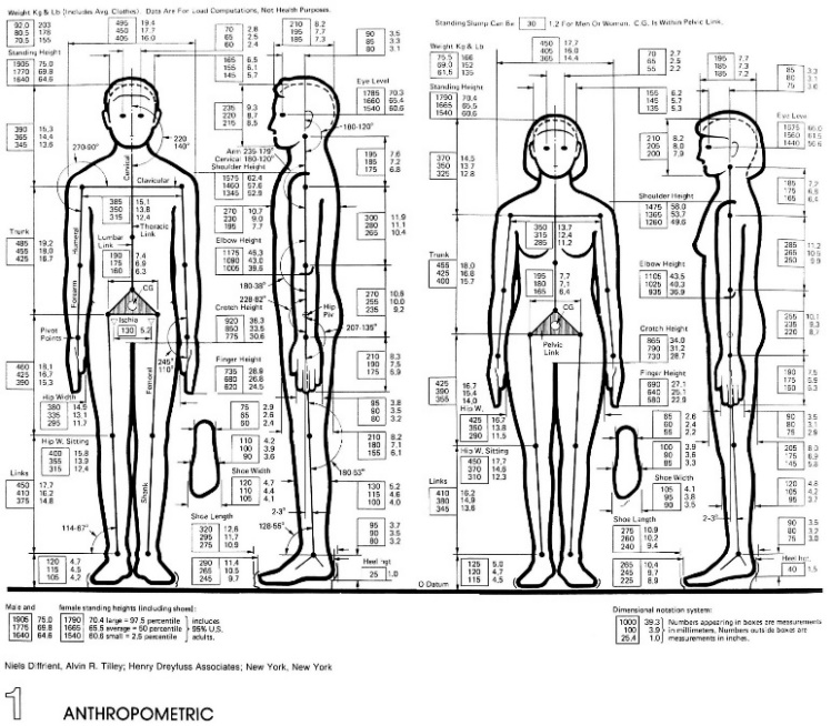 En l’àmbit del disseny serà el nord-americà Henry Dreyfuss qui el 1955 publicarà Designing for people, on va destacar la importància dels aspectes dimensionals, físics i psíquics dels éssers humans per al món del projecte. Dreyfuss i el seu equip de dissenyadors van promoure l’estudi del que van anomenar factors humans i la seva aplicació a la producció industrial d’objectes; per aquesta raó, es consideren els principals impulsors i pioners de l’aplicació en el disseny dels factors humans.