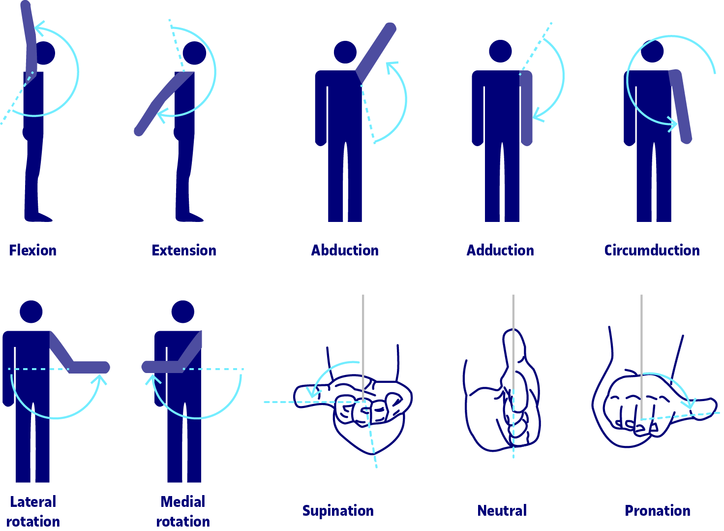 - Rotació lateral. Gir d’una part del cos per allunyar-la de la línia mitjana del cos.