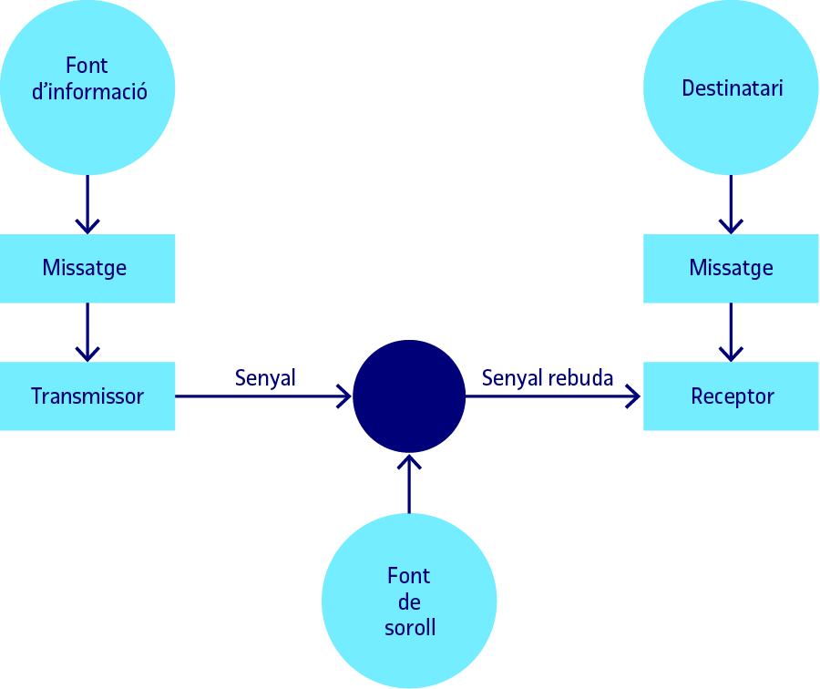 - Els sistemes de transmissió o emissió de missatges poden produir sons o sorolls simultàniament. Aquests elements poden generar distorsions en l’emissió del missatge o intervenir-hi, dificultant la seva recepció i comprensió. Aspectes com la freqüència, amplitud i potència dels sons, la seva presència en el temps i l’afectació que produeixen sobre el missatge intervenen directament en la comprensió. Pensem, per exemple, en la diversitat d’ús que donem als auriculars, podem utilitzar-los per millorar la qualitat de la recepció de missatges en ambients d’alt grau de soroll o també podem fer-los servir per protegir-nos i aïllar-nos d’aquests sorolls.