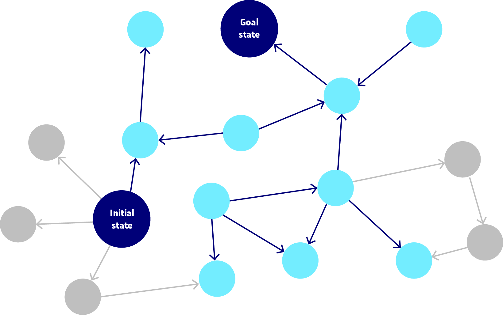 Fins ara hem representat el procés de manera lineal. Això no obstant, el procés de disseny no sempre és lineal. En conseqüència, la solució tampoc no està necessàriament al final i fins i tot podria haver més d’una solució vàlida. Així doncs, si ho intentem representar en un diagrama, el procés de disseny podria ser un espai en xarxa amb diferents camins per anar de la situació inicial a una o més situacions finals.