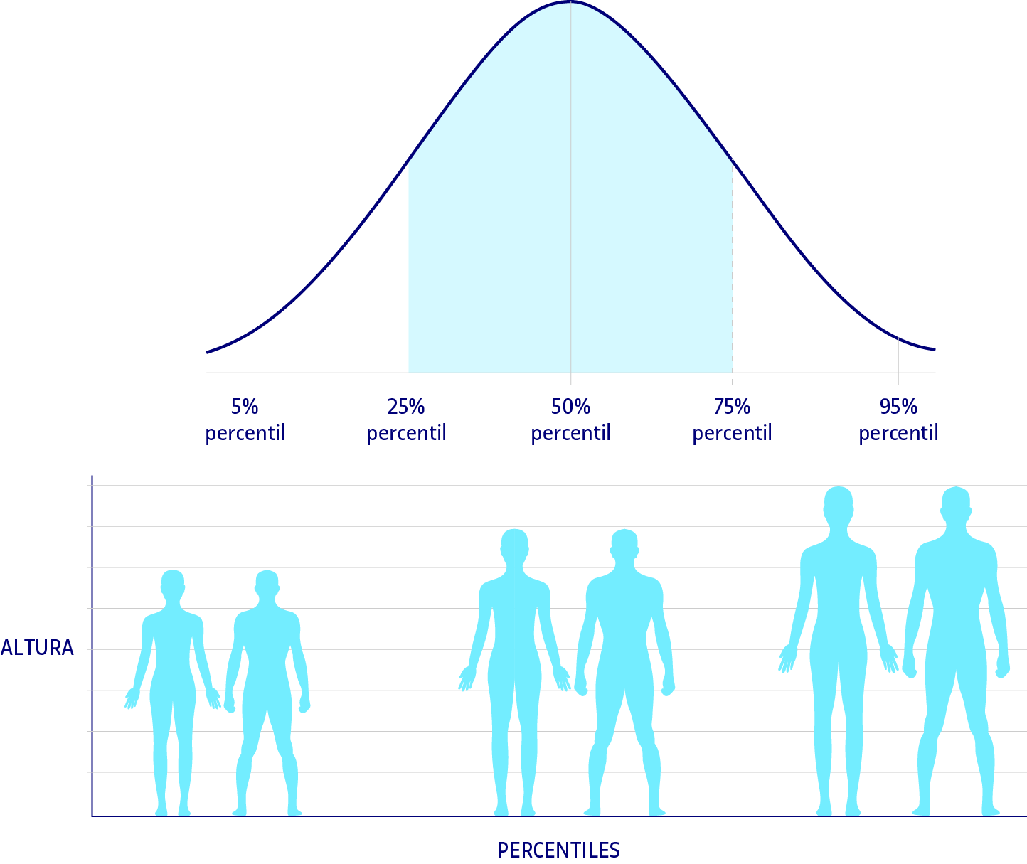El principio del diseño para la media recurre al promedio. Los datos utilizados en la aplicación del principio hacen referencia a un individuo de dimensiones medias, un individuo «típico». Normalmente los diseñadores utilizan un valor medio en sus proyectos, como el percentil 50. A pesar de ser un principio generalizado, su aplicación práctica debe responder a una valoración de cada caso concreto. Los datos antropométricos que se utilizan en los proyectos son concretos y determinados, cosa que facilita las tareas de diseño. El valor promedio se extiende a toda la población y se considera como el menos inconveniente y el más general.